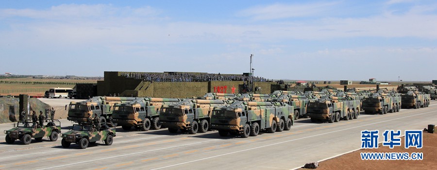 7月30日,慶祝中國人民解放軍建軍90周年閱兵在位于內(nèi)蒙古的朱日和訓(xùn)練基地舉行。中共中央總書記、國家主席、中央軍委主席習(xí)近平檢閱部隊并發(fā)表重要講話。這是常規(guī)導(dǎo)彈第2方隊。新華社記者 查春明 攝