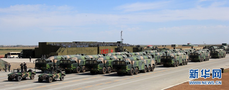 7月30日,慶祝中國人民解放軍建軍90周年閱兵在位于內(nèi)蒙古的朱日和訓(xùn)練基地舉行。中共中央總書記、國家主席、中央軍委主席習(xí)近平檢閱部隊并發(fā)表重要講話。這是核導(dǎo)彈方隊。新華社記者 查春明 攝