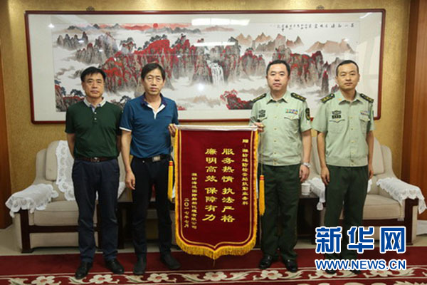 駐地企業(yè)向?yàn)H坊邊檢站贈送錦旗。