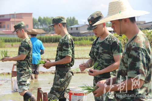 ????原標(biāo)題:貴港邊檢站官兵"金秋助農(nóng)插秧"主題黨日活動開到田間地頭