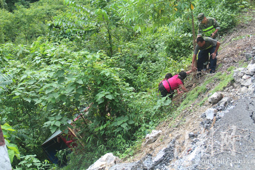 ????獲悉情況后,該所立即向百南鄉(xiāng)衛(wèi)生院通報(bào)情況,并組織官兵趕赴現(xiàn)場(chǎng)施救。邊防官兵在現(xiàn)場(chǎng)發(fā)現(xiàn)一輛三輪車(chē)側(cè)翻在半山坡,山坡下是10多米深的河流?!昂迷谟袠?shù)攔住,要不然后果不敢想象?!眹^群眾李師傅說(shuō)道。