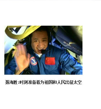 ??? 時刻準(zhǔn)備著,將祖國的榮耀一次次寫滿太空。在我加入航天員大隊(duì)后,有2件事深深地烙在我的腦海中。一是,一位老華僑在神舟五號任務(wù)成功后,含淚而說的“你們航天員飛得有多高,我們海外游子的頭就能昂多高”。二是,我們面對國旗許下的誓言,“為祖國的載人航天事業(yè)奮斗終身”。我始終以嚴(yán)慎細(xì)實(shí)的精神,以時不我待的狀態(tài),腳踏實(shí)地、努力學(xué)習(xí)、刻苦訓(xùn)練,以實(shí)際行動踐行諾言,用一生的執(zhí)著與追求,時刻準(zhǔn)備著,將祖國的榮耀一次次寫滿太空!?