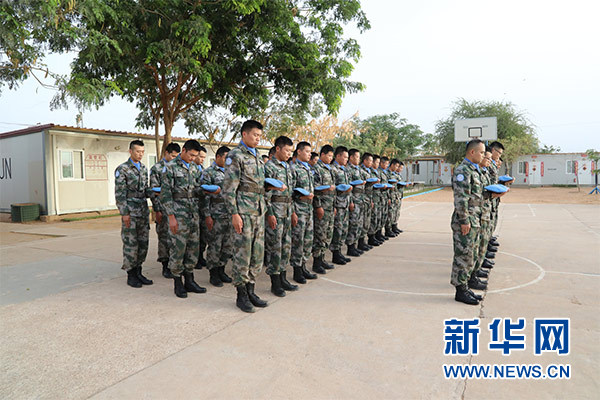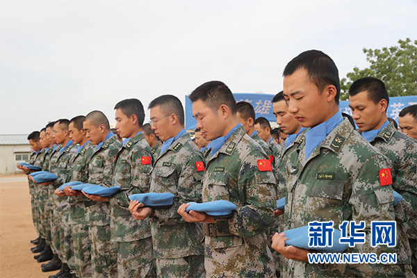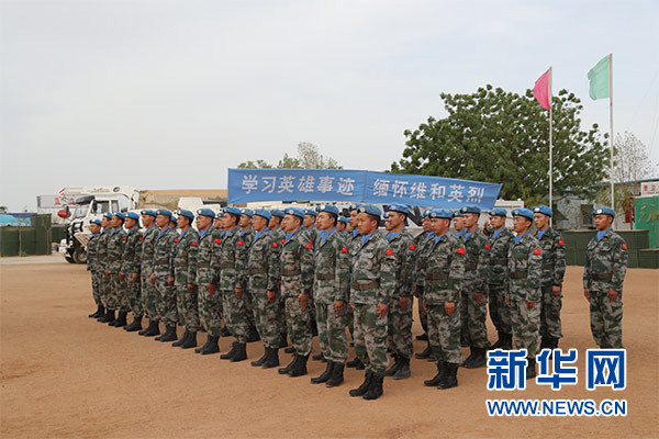 祭奠儀式上,大型機械鳴笛三聲,哀思樂曲響起,全體官兵整裝列隊,集體脫帽為犧牲在維和戰(zhàn)場上的英烈默哀三分鐘。隨后,官兵代表致辭,追憶維和英烈們無私奉獻(xiàn)、舍生取義的光輝事跡,表達(dá)為達(dá)爾富爾地區(qū)和平建設(shè)而努力奮斗的堅定決心。