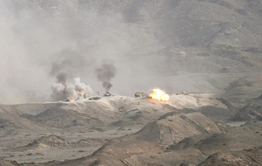 ????23日,陸軍新質(zhì)作戰(zhàn)力量演練在陸軍多個(gè)演兵場(chǎng)連續(xù)“打響”,8支新質(zhì)作戰(zhàn)力量輪番上陣。圖為武裝直升機(jī)發(fā)射導(dǎo)彈攻擊“敵”目標(biāo)。新華社記者王東明 攝