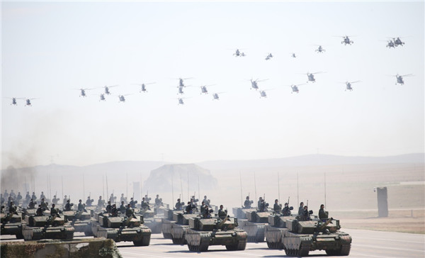 ????2017年7月30日,慶祝中國人民解放軍建軍90周年閱兵在位于內(nèi)蒙古的朱日和訓(xùn)練基地舉行。新華社記者 查春明 攝