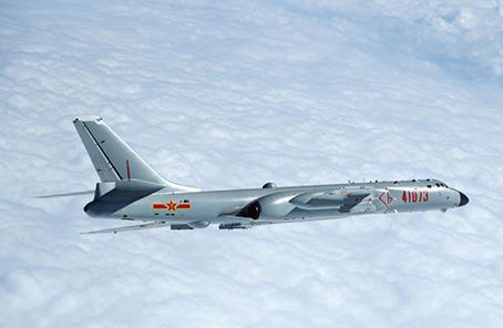 ????資料圖片:2017年11月23日,空軍轟-6K戰(zhàn)機前出第一島鏈開展遠洋訓練。新華社發(fā)(王國松 攝)