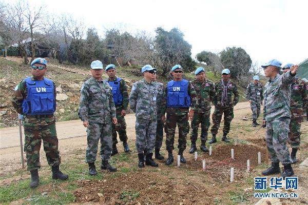 2月19日,在黎巴嫩以色列邊境“藍(lán)線(xiàn)”附近一處雷場(chǎng),中國(guó)維和官兵向柬埔寨維和官兵介紹安全高效掃雷排爆經(jīng)驗(yàn)。新華社發(fā)(尹博 攝)