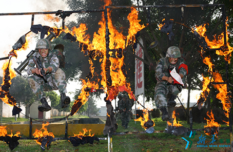 ????在一次對(duì)抗演習(xí)中,“王杰班”所在連隊(duì)官兵發(fā)起沖鋒(2015年6月25攝)。新華社發(fā)(趙聰 攝)