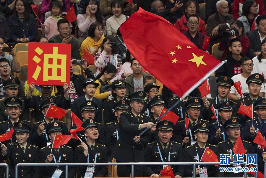 10月22日,觀眾在看臺(tái)為中國(guó)隊(duì)加油助威。 當(dāng)日,在武漢進(jìn)行的第七屆世界軍人運(yùn)動(dòng)會(huì)女子排球決賽中,中國(guó)隊(duì)以1比3不敵巴西隊(duì),獲得亞軍。 新華社記者賀長(zhǎng)山攝