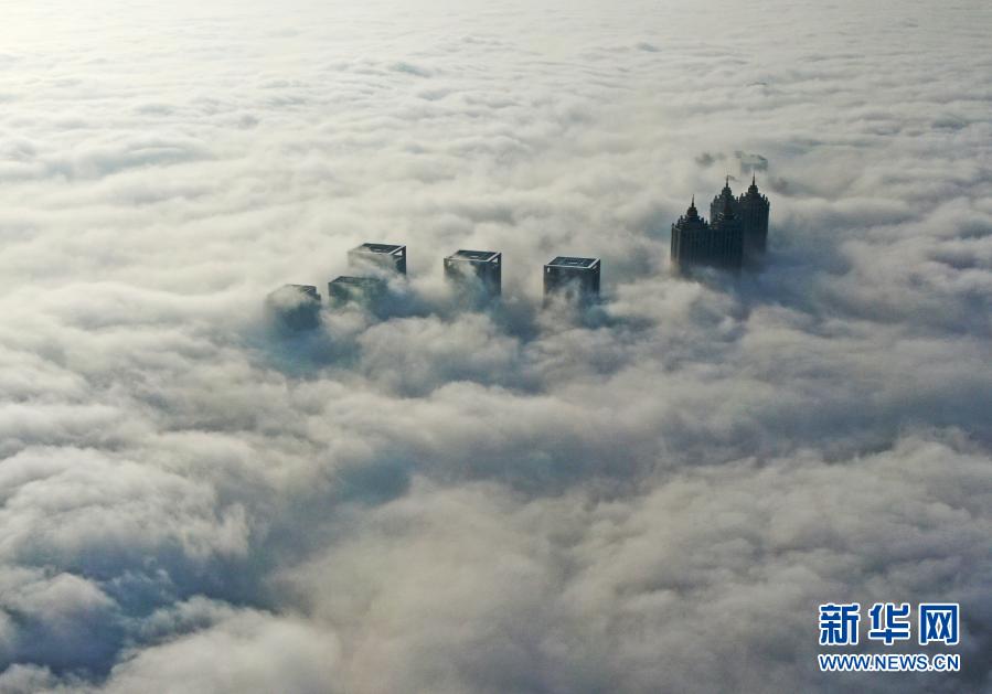 這是1月26日在沈陽市渾南區(qū)拍攝的市內(nèi)霧景(無人機(jī)照片)。當(dāng)日,沈陽出現(xiàn)大霧天氣,城市樓宇在濃霧中若隱若現(xiàn)。新華社記者 楊青 攝