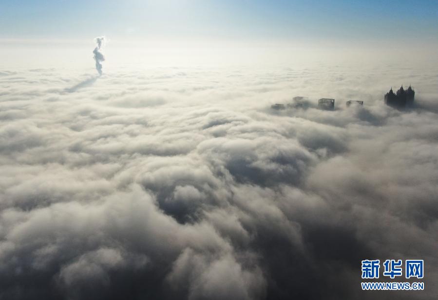 這是1月26日在沈陽市渾南區(qū)拍攝的市內(nèi)霧景(無人機(jī)照片)。新華社記者 楊青 攝