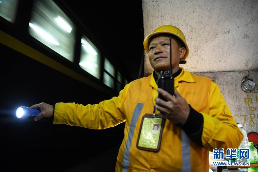 在廣西河池境內(nèi)黔桂鐵路線上的鄧山隧道,中國鐵路南寧局集團(tuán)有限公司柳州工務(wù)段的4名看守工輪換值班,依靠手電筒在黑暗中穿行,及時(shí)巡查隧道中可能出現(xiàn)的各種隱患,確保每天經(jīng)隧道運(yùn)行的59趟客貨列車春運(yùn)安全。鄧山隧道全長(zhǎng)773米,是一個(gè)需要人員全天候看守的鐵路隧道。