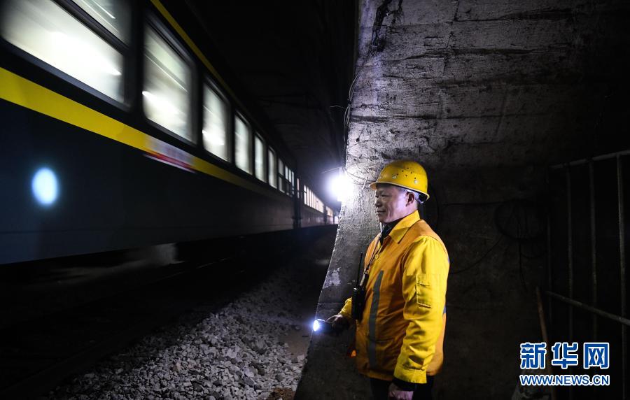 在廣西河池境內(nèi)黔桂鐵路線上的鄧山隧道,中國鐵路南寧局集團有限公司柳州工務(wù)段的4名看守工輪換值班,依靠手電筒在黑暗中穿行,及時巡查隧道中可能出現(xiàn)的各種隱患,確保每天經(jīng)隧道運行的59趟客貨列車春運安全。鄧山隧道全長773米,是一個需要人員全天候看守的鐵路隧道。