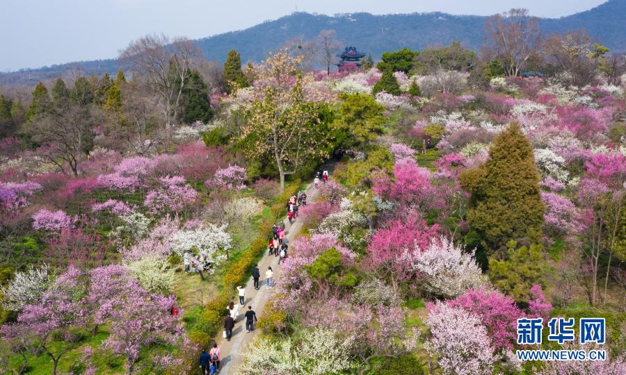 2月14日,游人在南京梅花山賞花(無人機(jī)照片)。新華社發(fā)(蘇陽 攝)