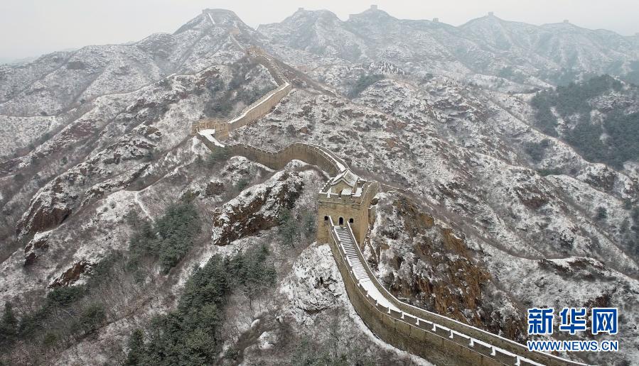 這是2月23日拍攝的金山嶺長(zhǎng)城雪景(無(wú)人機(jī)照片)。受冷空氣影響,河北省承德市灤平縣當(dāng)日出現(xiàn)降雪天氣。雪后的金山嶺長(zhǎng)城銀裝素裹,美如畫(huà)卷。新華社發(fā)(王立群 攝)
