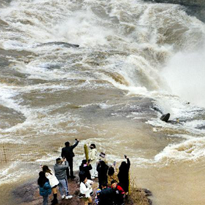 從2月24日起,陜西壺口瀑布景區(qū)恢復(fù)對(duì)外開(kāi)放。隨著氣溫回升,黃河上游冰雪消融,水量增大,壺口瀑布的主瀑布恢復(fù)了往日奔騰咆哮的氣勢(shì),黃河之水奔騰而下,形成壯觀(guān)瀑布群。