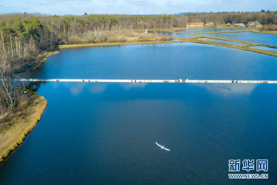 2月27日,人們在比利時小鎮(zhèn)波克萊克附近的“水中通道”中前行(無人機(jī)照片)。