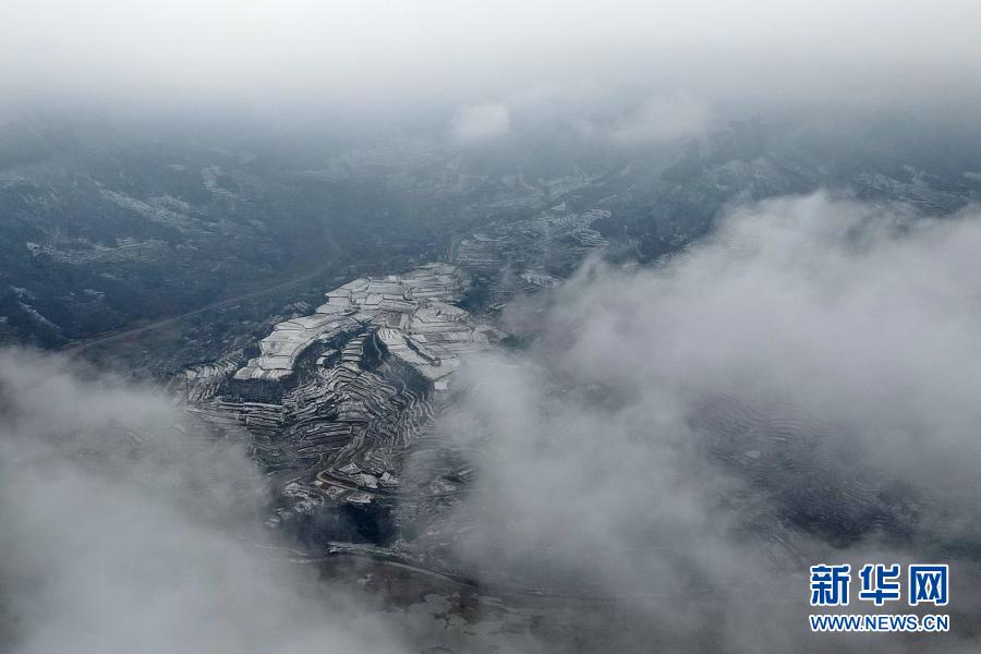 連日來,河北省沙河市西部山區(qū)出現(xiàn)降雪天氣,白雪覆蓋的梯田宛如一幅水墨畫。