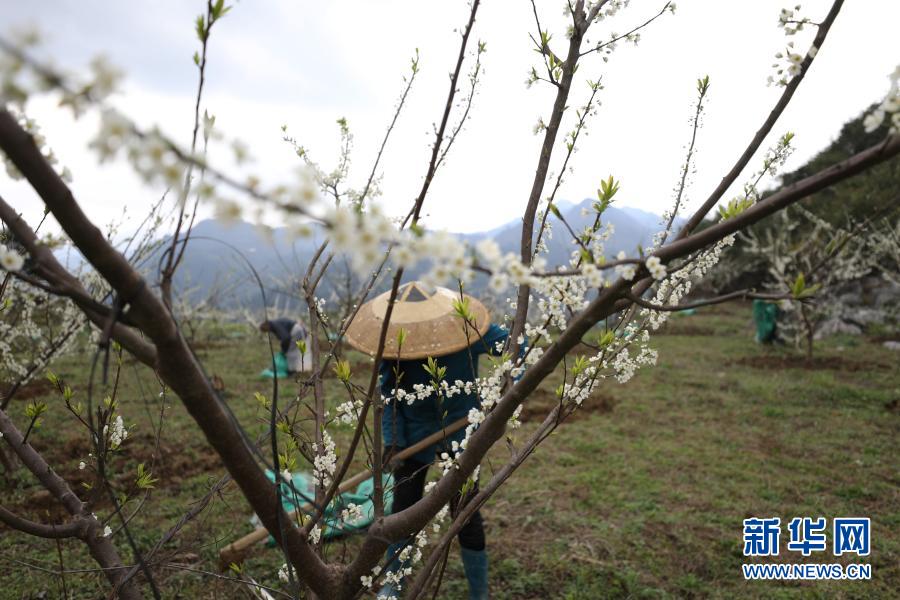 3月2日,村民在貴州省銅仁市江口縣閔孝鎮(zhèn)提紅村過江屯翠紅李種植基地進行春管作業(yè)。新華社發(fā)(李鶴 攝)