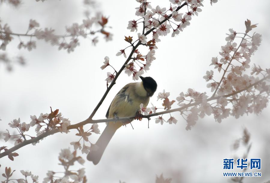 3月2日,在湖北省恩施土家族苗族自治州宣恩縣貢水河國(guó)家濕地公園,一只黃臀鵯在花枝上停留。新華社發(fā)(宋文 攝)
