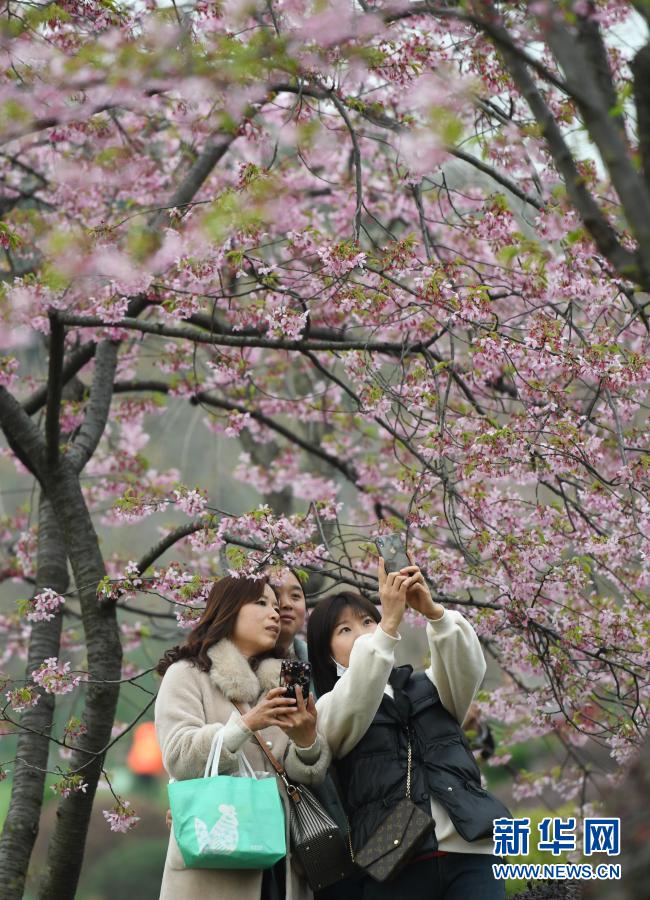 3月3日,游客在武漢東湖櫻花園內(nèi)賞花。