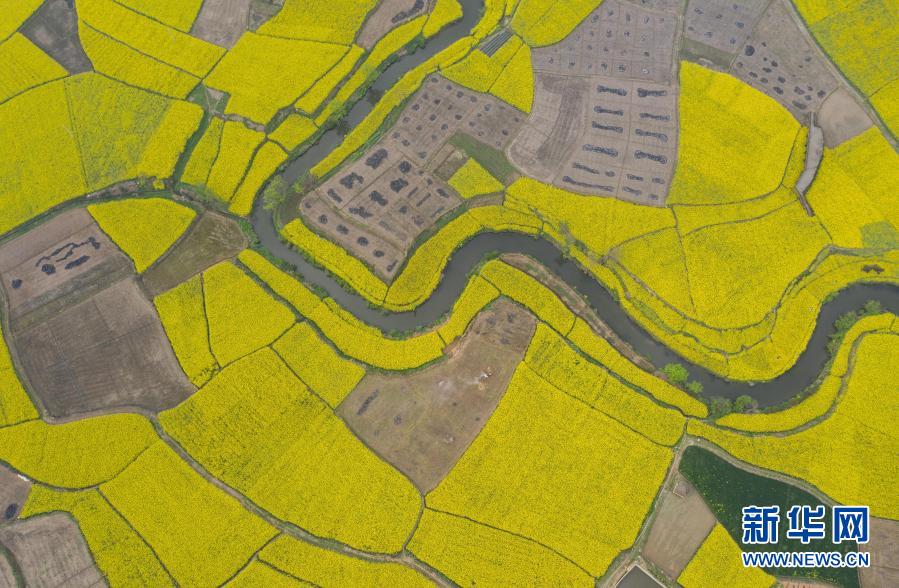 安州區(qū)樂興鎮(zhèn)蓮花村的油菜花海(3月14日攝,無人機(jī)照片)。新華社記者 江宏景 攝