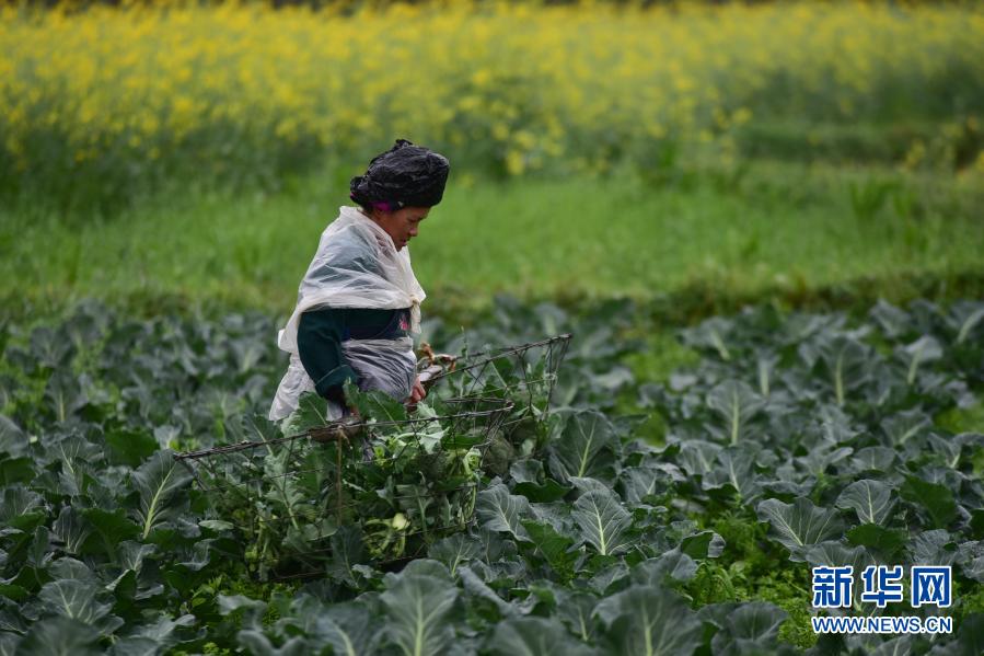 3月20日,村民在貴州省丹寨縣揚武鎮(zhèn)金湖社區(qū)蔬菜種植基地采收西藍花。