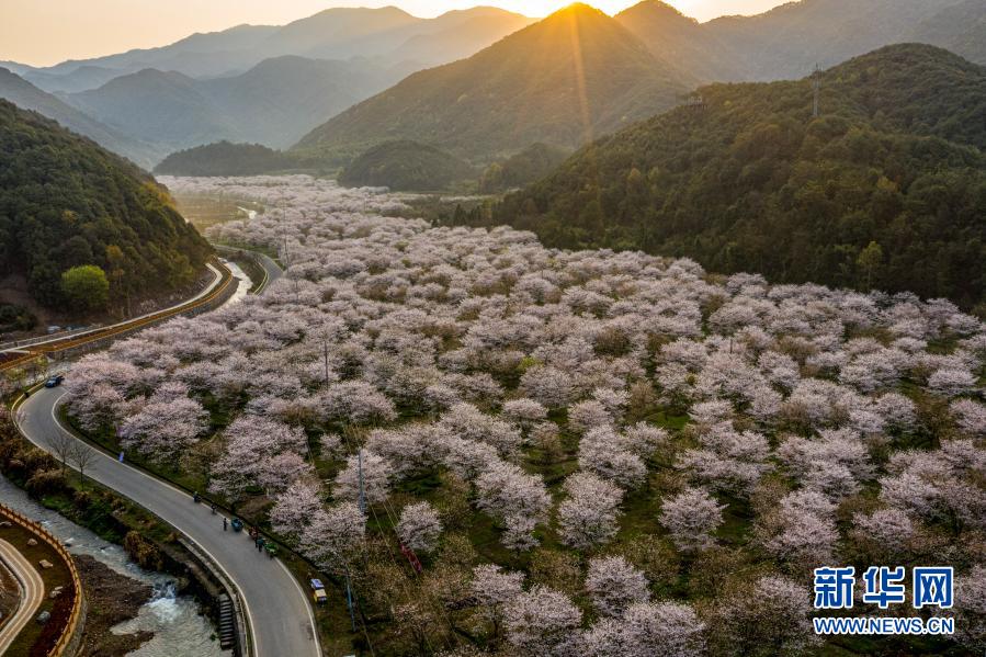 近日,位于浙江省紹興市上虞區(qū)章鎮(zhèn)鎮(zhèn)張村櫻花谷大片櫻花綻放,花香四溢,吸引游人前來踏青賞花。