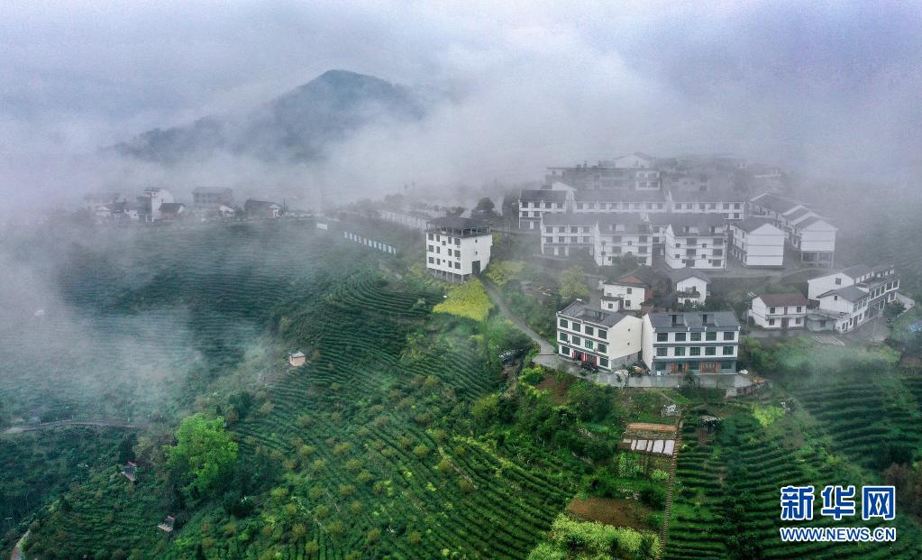 云霧中的流水鎮(zhèn)萬(wàn)畝茶園(3月26日攝,無(wú)人機(jī)照片)。