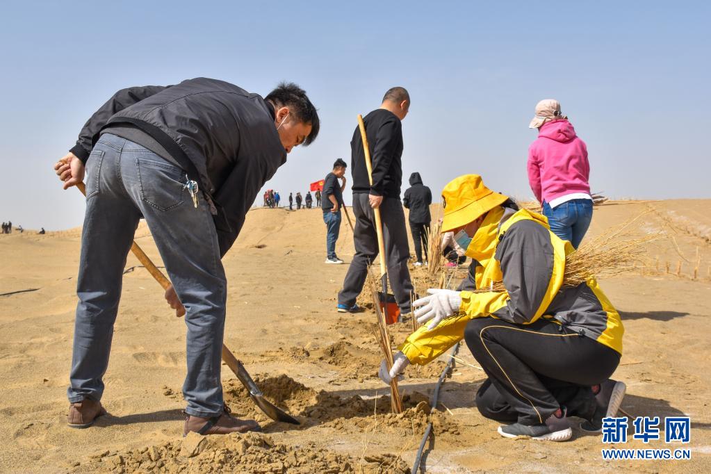 隨著天氣逐漸轉(zhuǎn)暖,在地處塔克拉瑪干沙漠南緣的新疆且末縣,人們紛紛行動(dòng)起來(lái)植樹防沙,為沙漠增添綠色。