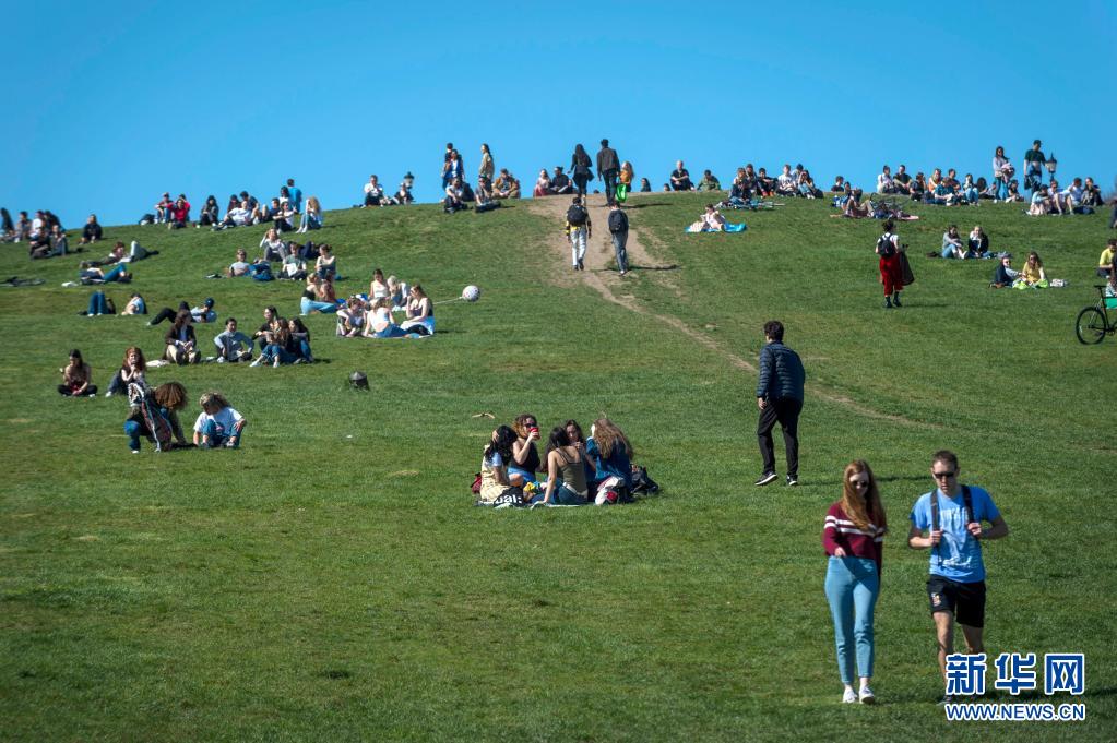 3月29日,人們?cè)谟?guó)倫敦的報(bào)春花山享受陽(yáng)光。