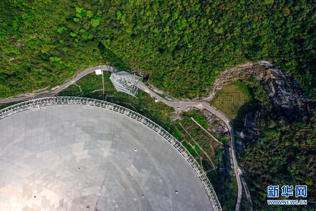 在貴州省平塘縣,被譽(yù)為“中國天眼”的500米口徑球面射電望遠(yuǎn)鏡(FAST)在群山中仰望星空,探求著宇宙奧秘。