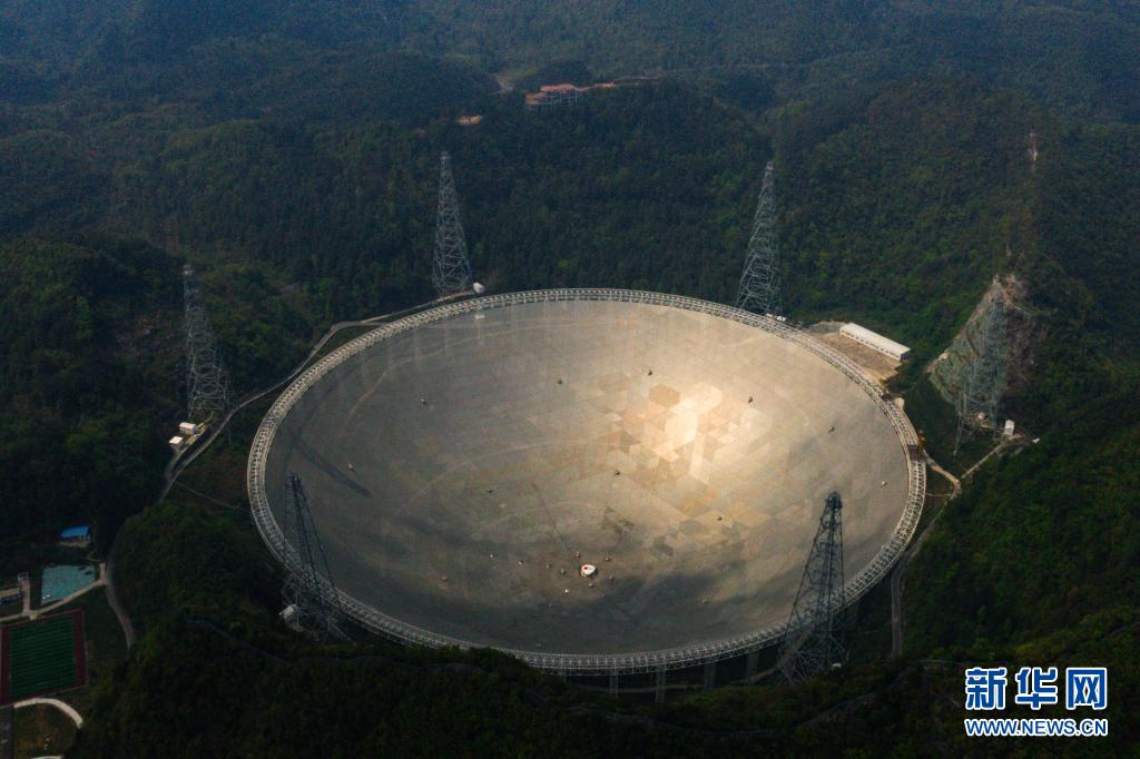 在貴州省平塘縣,被譽(yù)為“中國(guó)天眼”的500米口徑球面射電望遠(yuǎn)鏡(FAST)在群山中仰望星空,探求著宇宙奧秘。