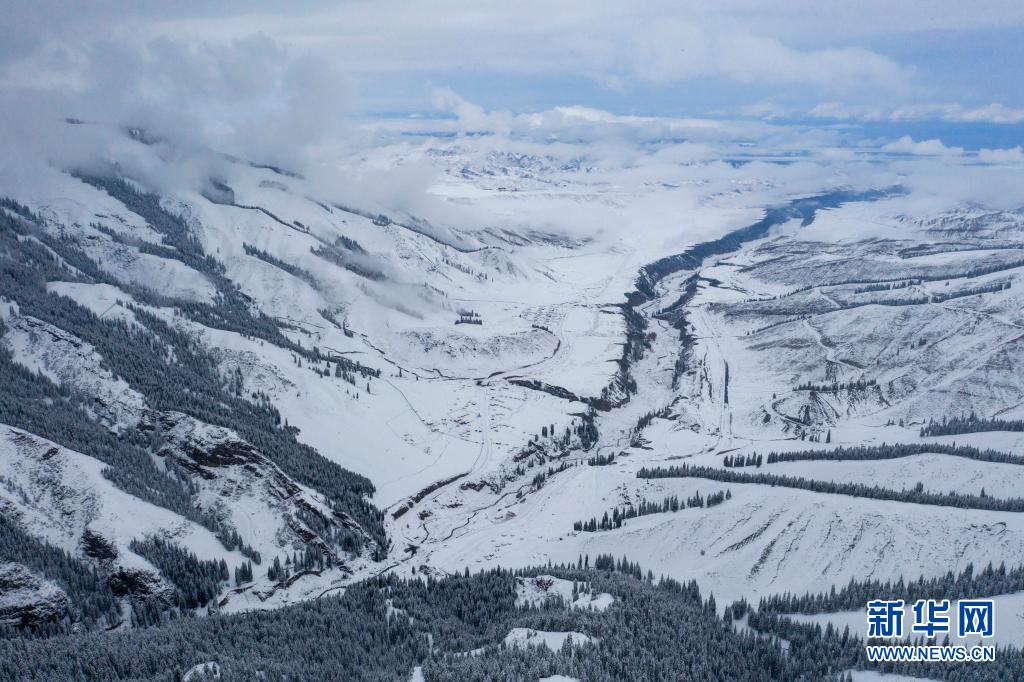 當(dāng)日,一場春雪過后,新疆沙灣市南部的天山山脈一片銀裝素裹。蒼山覆雪、云霧繚繞,如同一幅幅水墨畫般動(dòng)人。