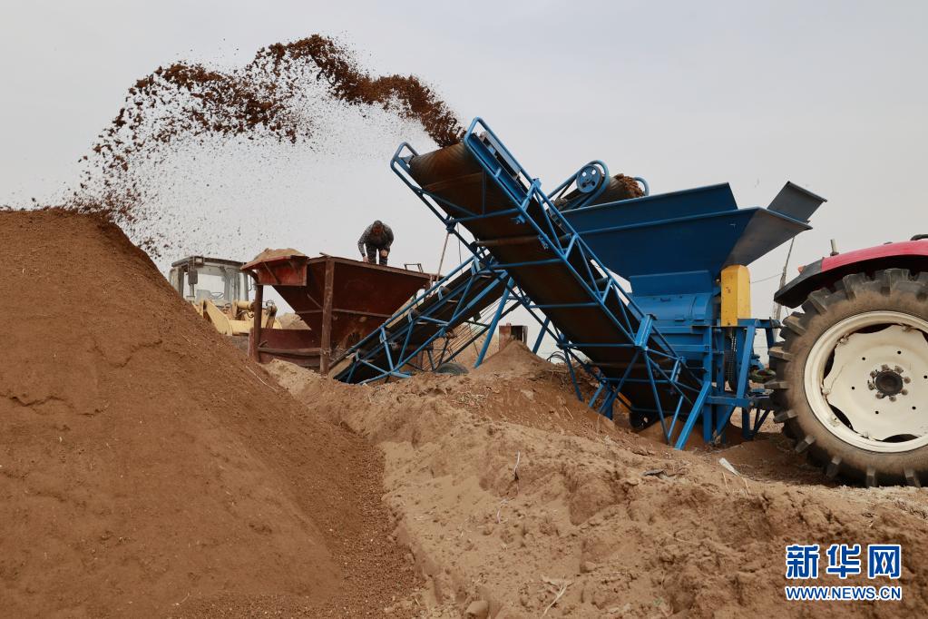 4月3日,唐山市豐南區(qū)一水稻育秧合作社的工人在篩選育苗用土。
