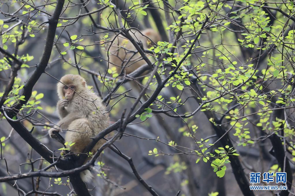 4月3日,在神農(nóng)山風(fēng)景區(qū),野生太行獼猴在樹(shù)上嬉戲。隨著氣溫回暖,河南省沁陽(yáng)市神農(nóng)山風(fēng)景區(qū)野生太行獼猴活躍起來(lái),在山林間嬉戲玩鬧,為景區(qū)增添生機(jī)和靈氣。新華社發(fā)(徐宏星 攝)