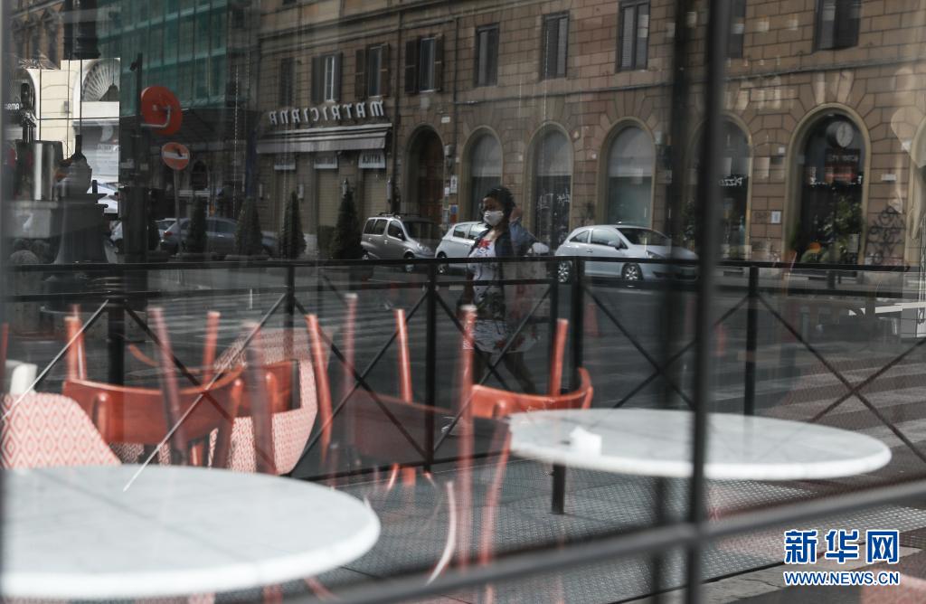 4月3日,一名女子走過(guò)意大利羅馬一家關(guān)閉的餐館。