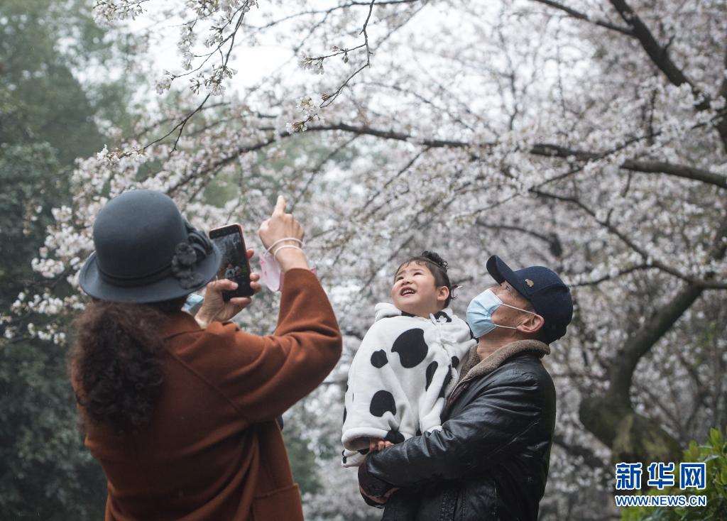 3月8日,游客在武漢大學(xué)櫻花大道賞花。新華社記者 肖藝九 攝