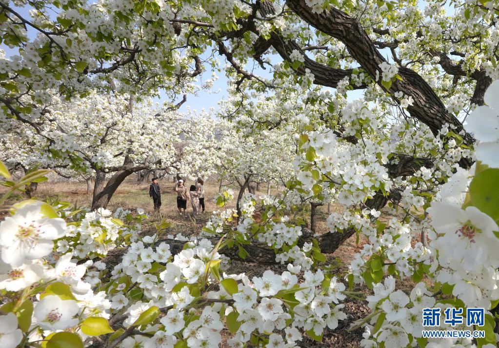 近日,河北省遷西縣東蓮花院鎮(zhèn)的數(shù)千畝梨花相繼綻放,吸引游客前來(lái)賞花踏青。