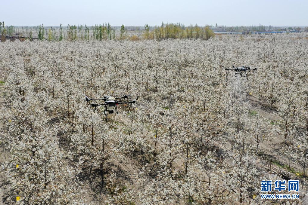 新華全媒+丨新疆:梨農(nóng)授粉用上無人機(jī)