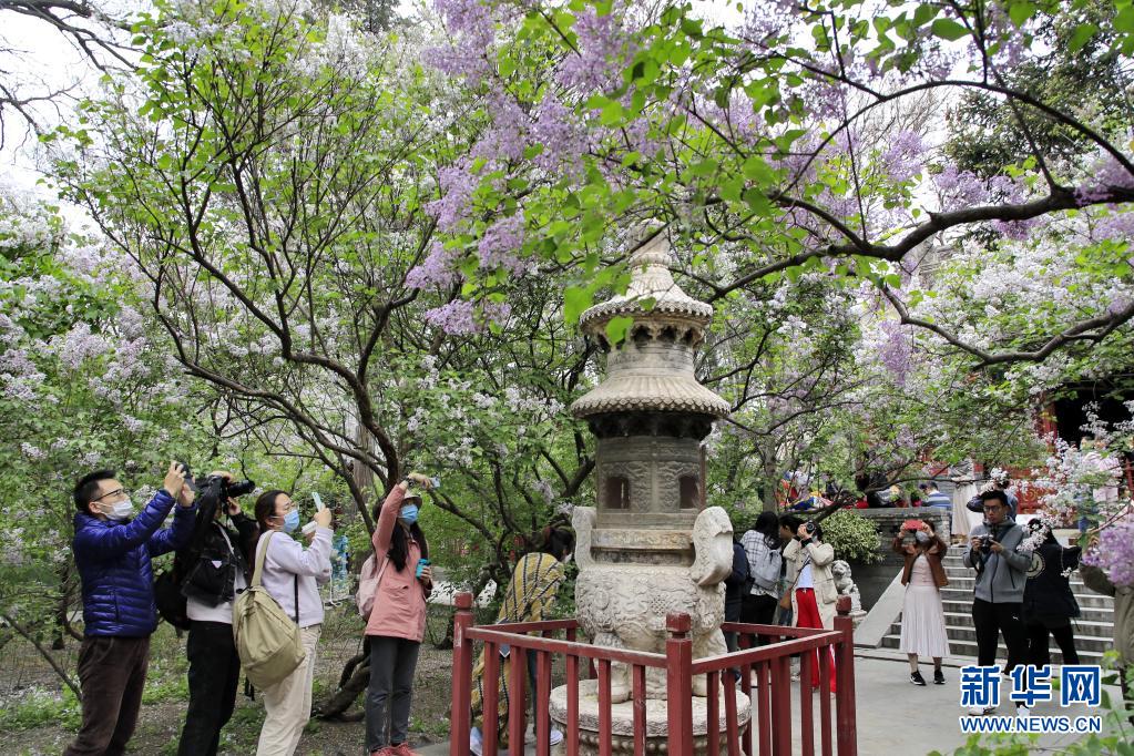4月11日,游客在北京法源寺拍攝盛開的丁香花。新華社發(fā)(劉憲國 攝)