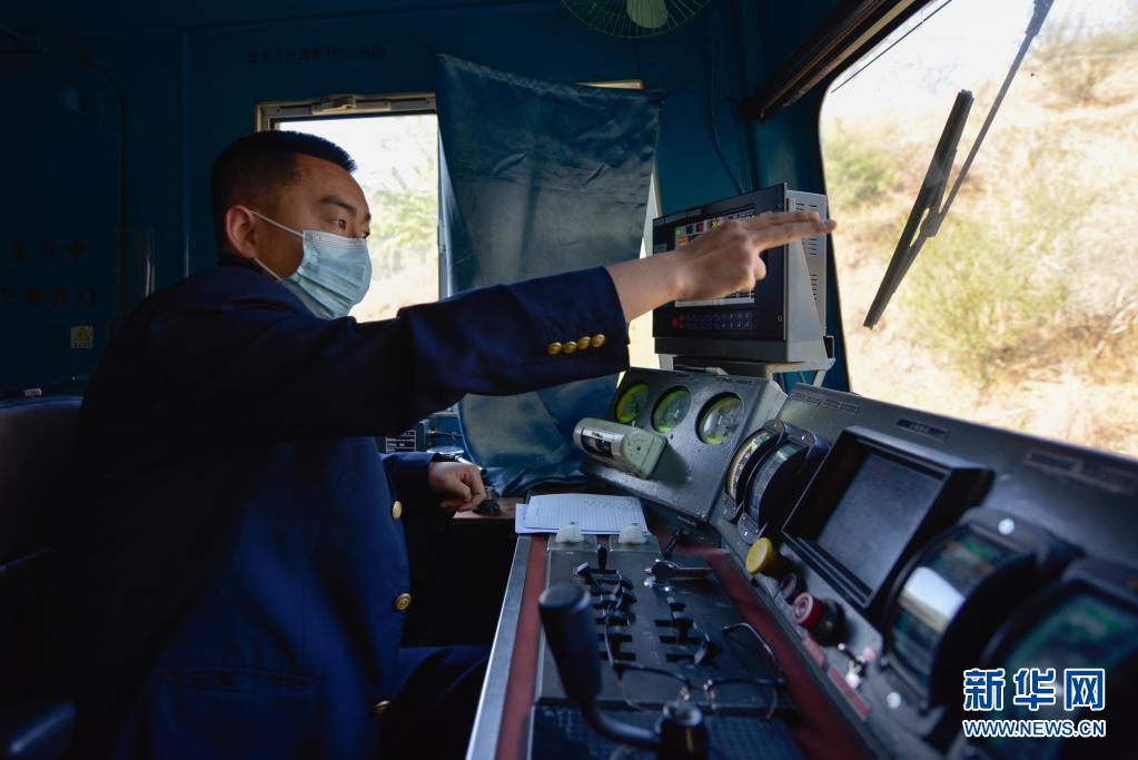 中國鐵路成都局集團公司成都客運段5633/5634次列車駕駛員趙瑋在發(fā)車前確認(rèn)信號(4月11日攝)。新華社記者 胥冰潔 攝
