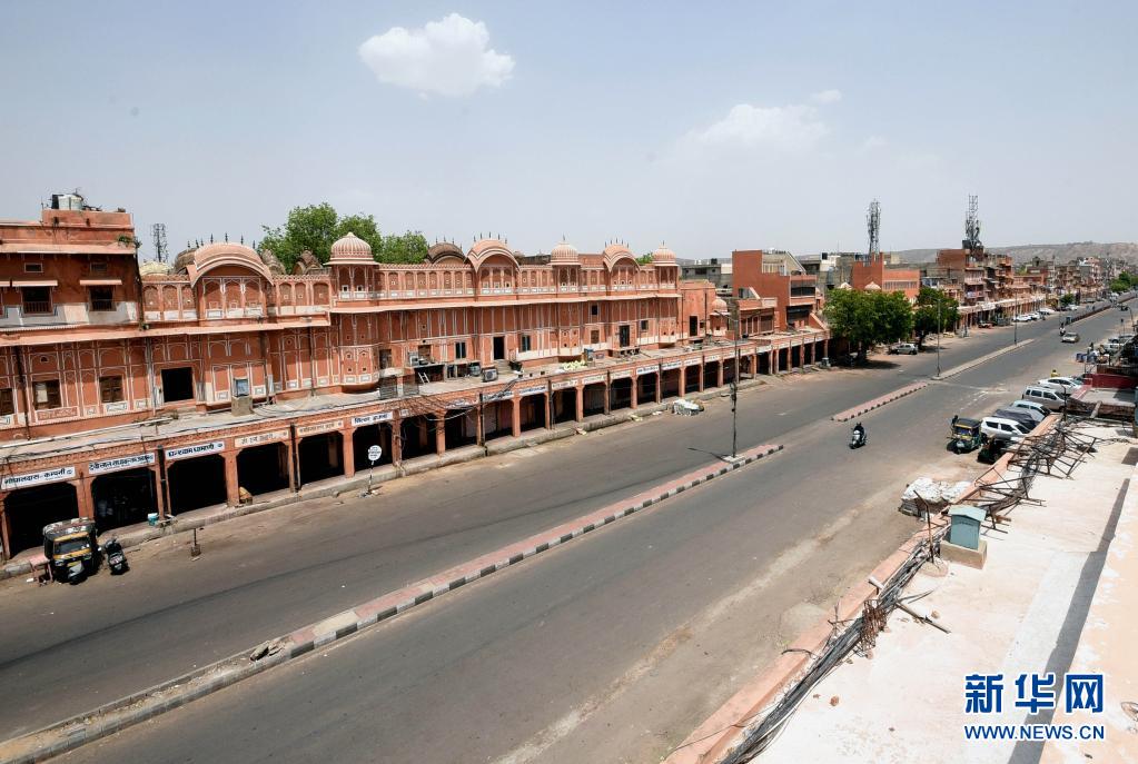 4月18日,印度著名的旅游城市齋浦爾街頭空空蕩蕩。由于新冠疫情不斷惡化,印度實行了更嚴格的封控措施,許多重要的博物館和旅游景點被關閉。新華社發(fā)