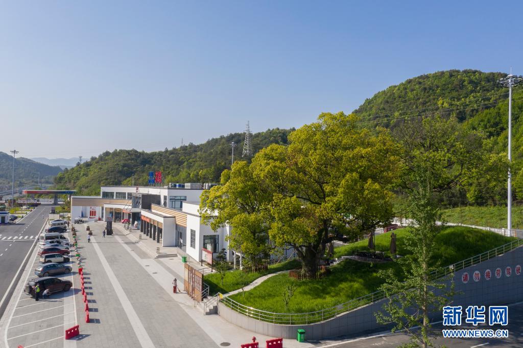 杭州第二繞城高速西復線次塢服務區(qū)有3棵樹齡在100年以上的古樹。服務區(qū)在建設(shè)過程中,將古樹保護起來,現(xiàn)已成為一道特色景觀。新華社發(fā)(郭斌 攝)