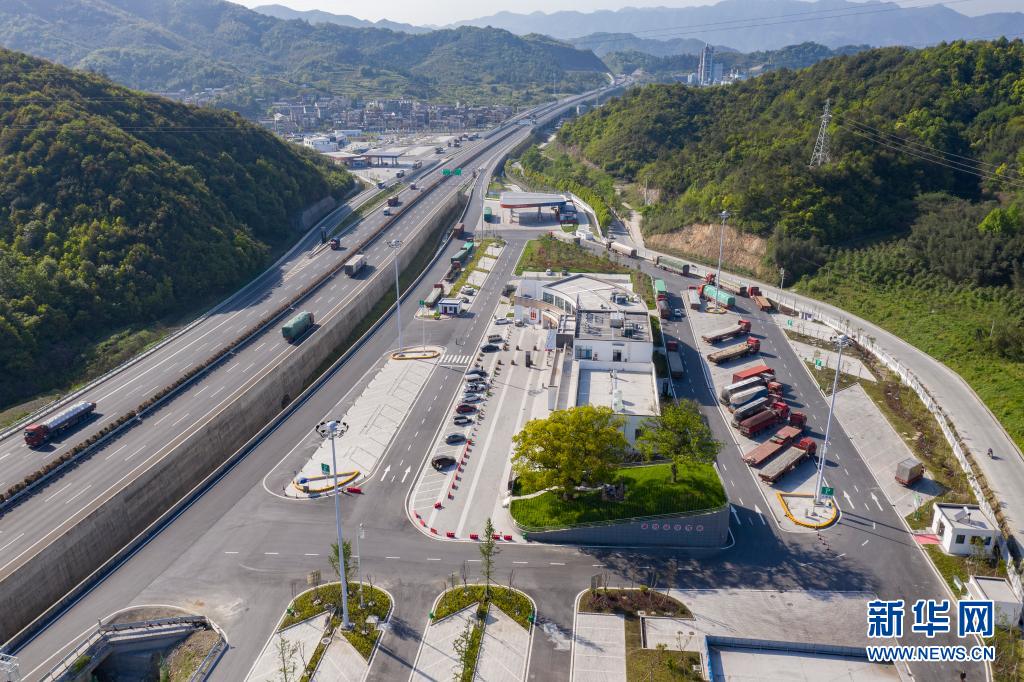 4月19日拍攝的杭州第二繞城高速西復(fù)線次塢服務(wù)區(qū)(無人機(jī)照片)。