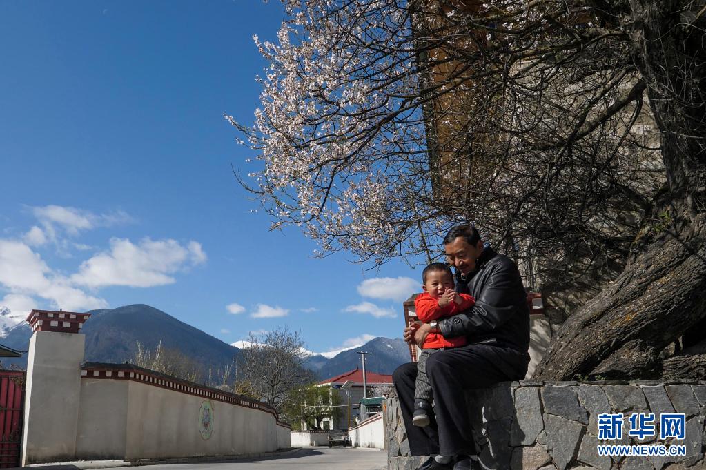 這是巴吉村村黨支部書記米瑪和他的孫子(4月6日攝)。新華社記者 洛卓嘉措 攝