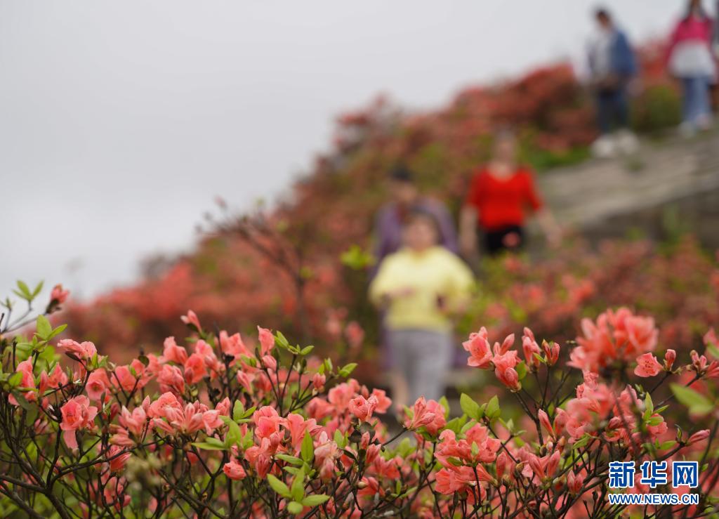 4月26日,游人在貴州省黔東南苗族侗族自治州丹寨縣龍泉山景區(qū)賞花。近日,各地鮮花盛開,吸引人們走出家門踏青賞花。新華社發(fā)(楊武魁 攝)