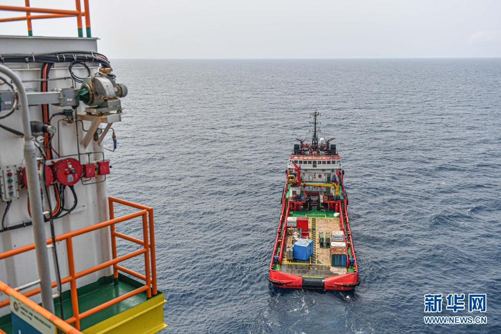 這是4月25日在南海北部海域拍攝的為中國(guó)海油樂(lè)東15-1氣田運(yùn)送物資的拖船。