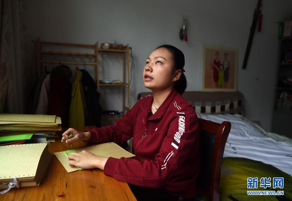 4月28日,葉景芬在位于龍泉市西街街道河星村的家中進(jìn)行盲文書(shū)寫(xiě)。
