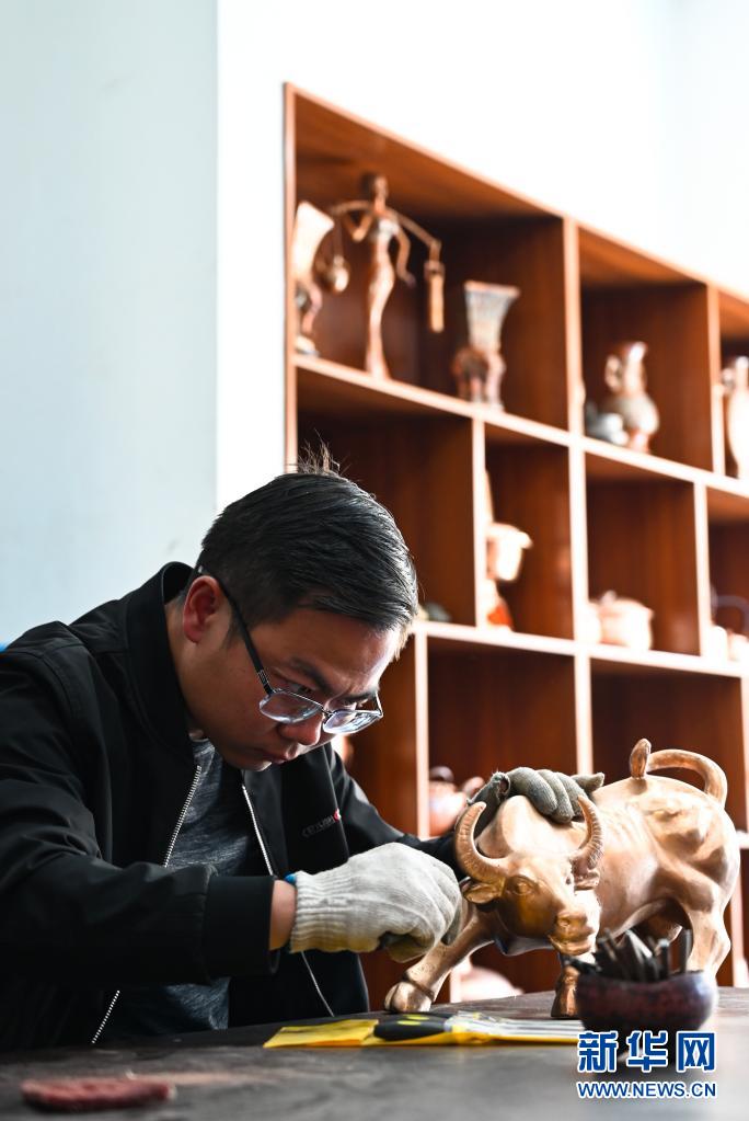 地處滇東北、烏蒙山腹地的云南會(huì)澤縣流傳著具有300多年歷史的斑銅制作工藝。斑銅工藝復(fù)雜,要采用高品位的銅為原料,經(jīng)過(guò)20余道工序制作而成。產(chǎn)品“妙在有斑,貴在渾厚”,風(fēng)格獨(dú)樹(shù)一幟。33歲的張偉是會(huì)澤“張氏斑銅”的第十三代傳人。自幼深受地域文化和家庭熏陶的他,大學(xué)畢業(yè)后,返鄉(xiāng)從事斑銅制作工作。在會(huì)澤古城的“銅匠街”,張偉創(chuàng)辦了斑銅傳習(xí)館,不斷研發(fā)斑銅新產(chǎn)品、傳承著這項(xiàng)非遺技藝。“斑銅是一種情感、一種文化,希望在我們這代人的努力下能夠更好地將它傳承下去,讓更多人了解斑銅的獨(dú)特魅力。”張偉說(shuō)。